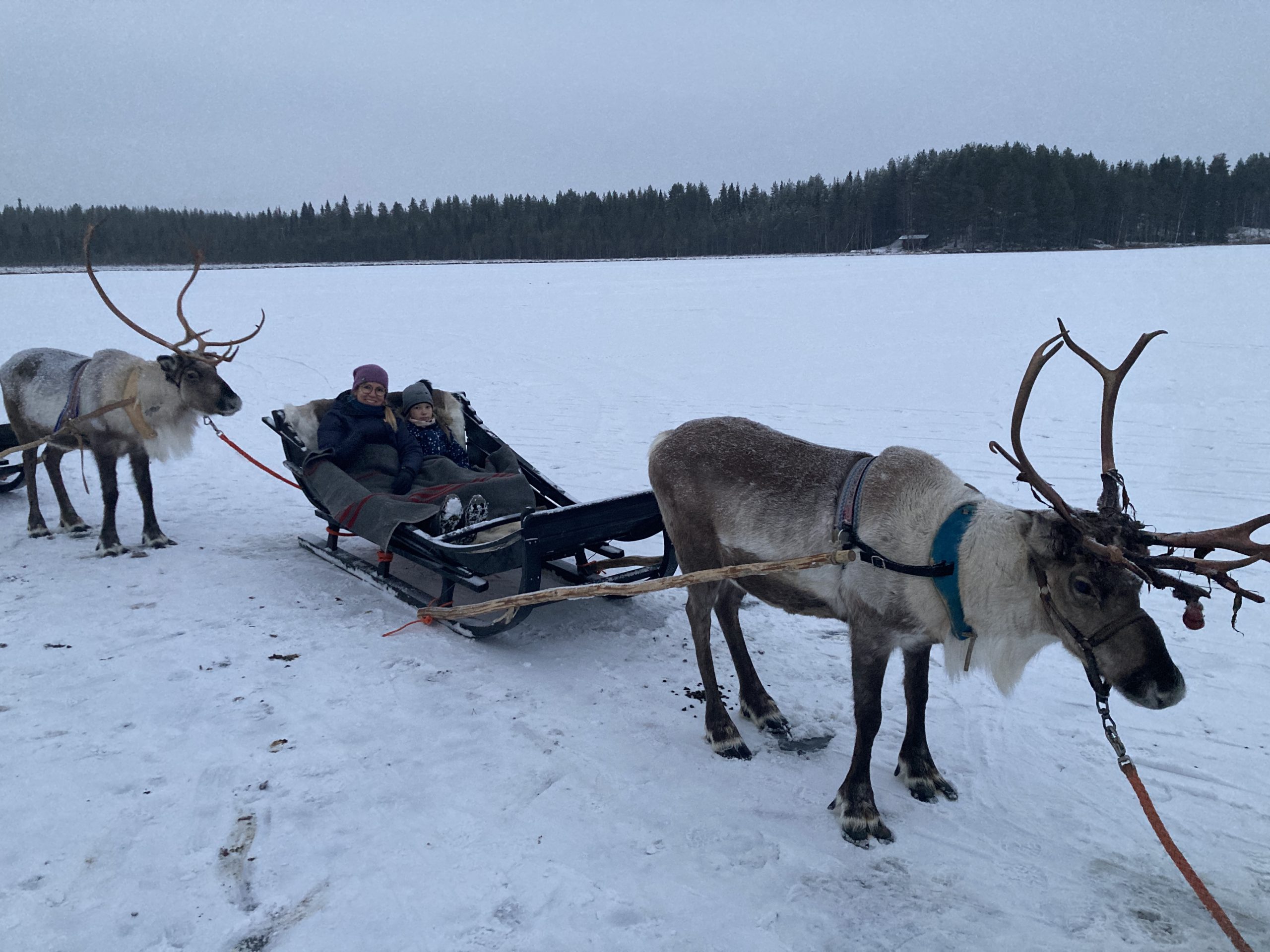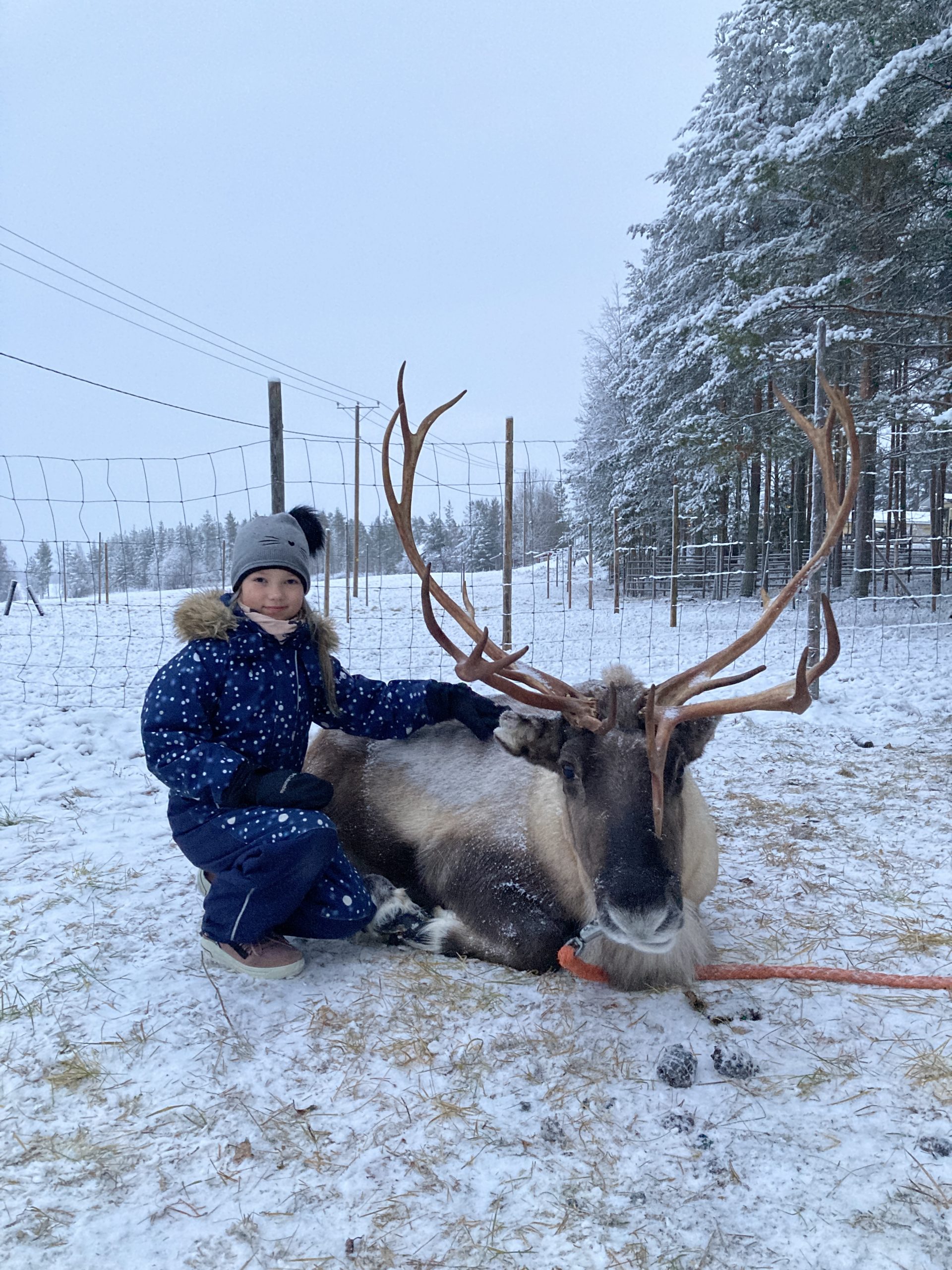 Juba reisi planeerides tegi meie pere otsuse, et kui me läheme Põhja-Soome, siis me tahame ehedat elamust ka kuskilt põdrafarmist. Estraveli kunagise töötaja Annekreeta, kes nüüd sealkandis elab ja reisibürood omab, soovitusel ja abil broneerisime põdrasafari 300 aastat vanas põdrafarmis, mis asub Rovaniemi linnast lühikese sõidu kaugusel. Väljasõit sisaldas ka transporti, seega väikebuss võttis meid oma hotellist peale ja viis pärast tagasi ka. Seal saime kuulda ajalugu ja toredaid lugusid põhjapõtradest, põtradele pai teha ning muidugi sõita jäätunud järvel saanide taha rakendatud ning väga pikalt selleks treenitud põhjapõtradega. Välja jagati ka nö põdrasõidu juhiload.