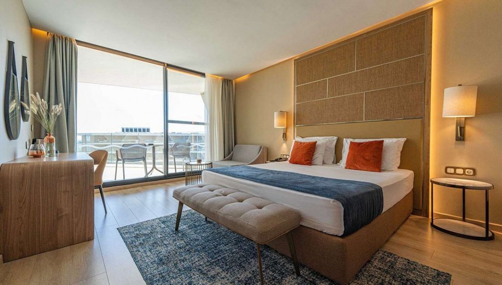 KirjeldusTegemist on luksusliku 5-tärni hotelliga, mis asub vaikses piirkonnas, kuurordi keskusest umbes 2,6km (Aheloy) ja 7,4km (Pomorie), otse tumeda liivaga ranna ääres. Paistab silma erakordselt kõrge tubade standardi poolest, pakub kvaliteetset Ultra All-Inclusive kontseptsiooni 24/7 toidu ja jookidega, keskenduvad tuntud rahvusvahelistele brändidele. Mitu basseini, veeliumäed, lastele mänguväljak, eraldi “Adults area”. Asukoha poolest pigem eraldatud, kuid ka ringi liikumiseks on piisavalt transpordi valikuid (nt buss, takso, autorent). Sobib täiskasvanutele rahulikuks puhkuseks. |