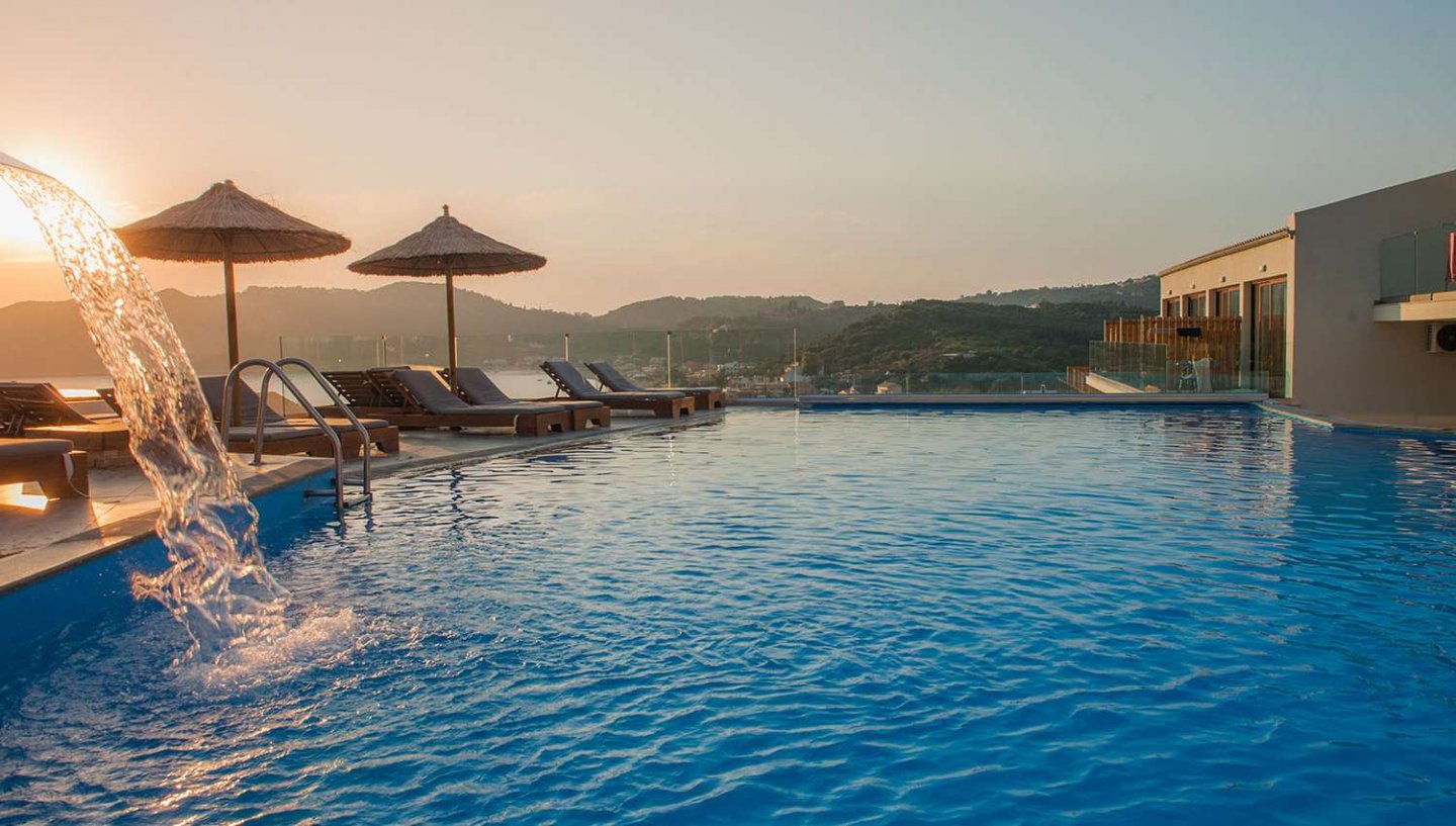 Suhteliselt uus, stiilne ja kaasaegne hoteel, mis asub kohe mere ääres, ilusa pika liivarannaga. Keskusest eemal, ümbruses ei ole mitte midagi. Territoorium avar, roheline ja kena aed. Lastele ka 3 veeliumäge, mis on hinnas vaid AI toitlustuse puhul, muidu lisatasu eest. Tenniseväljakud-2. Väike spa. Toad on ilusad ja avarad. Soovitame peredele, kuid arvestama peab, et asukoht on tõesti eraldi ja 2,5 km Acharavi keskusesse. Lennujaamast 42 km.