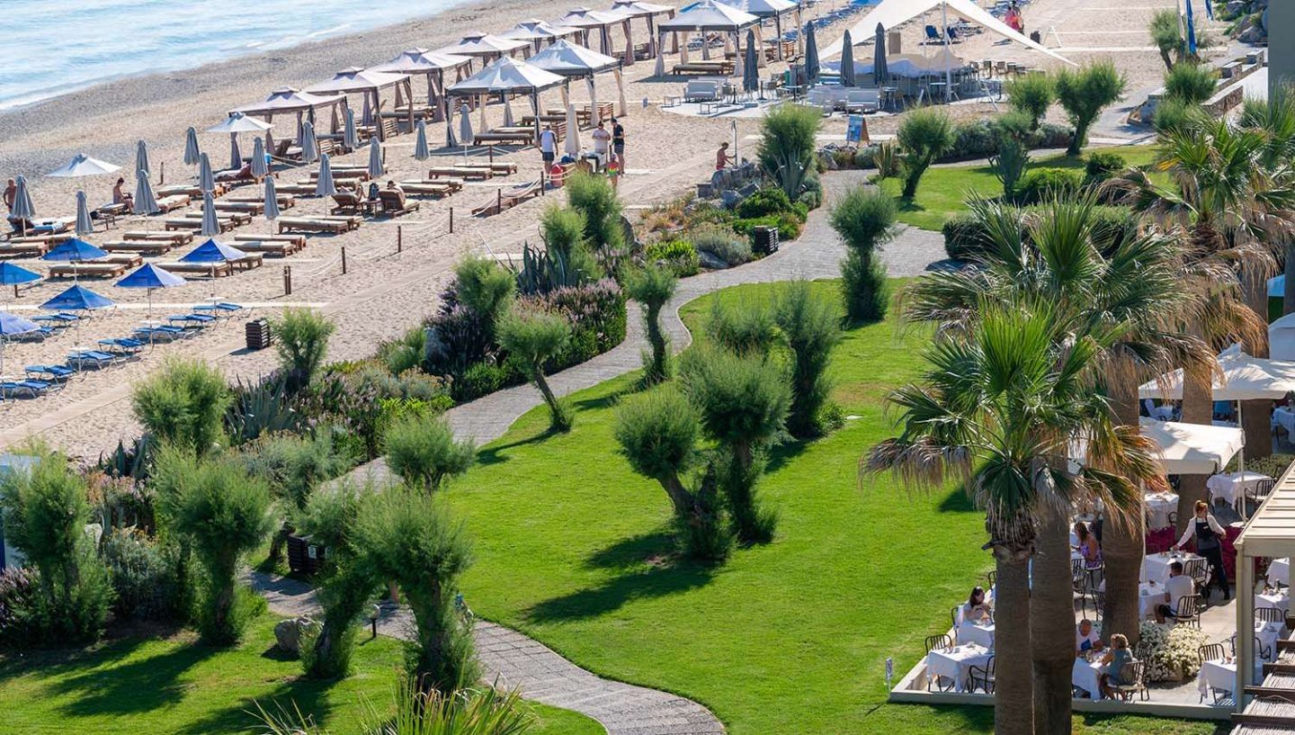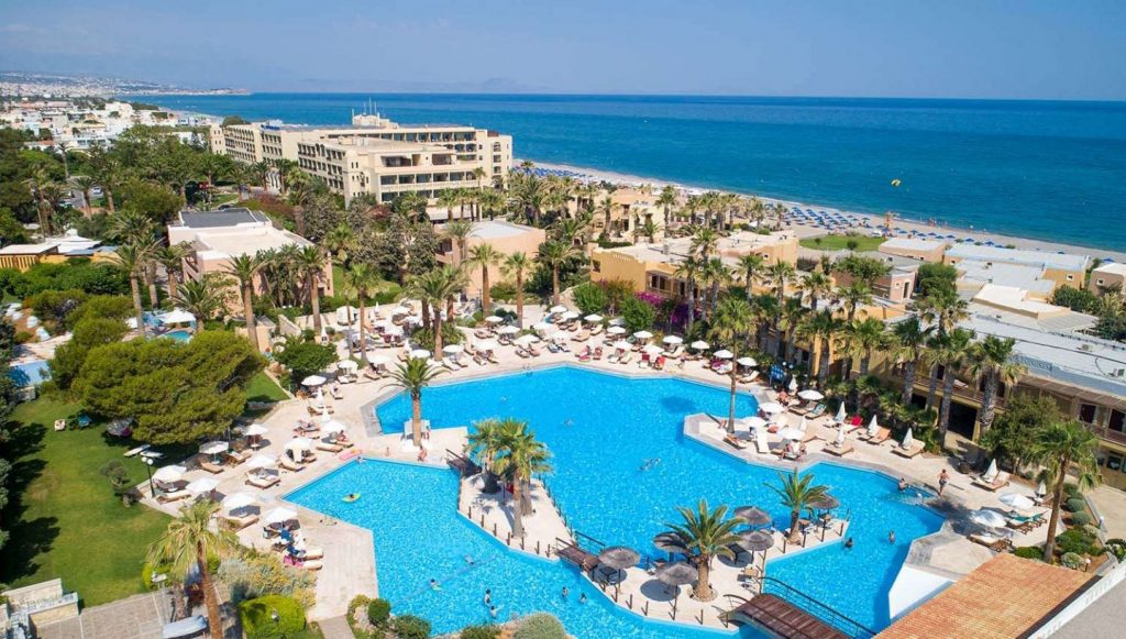 KirjeldusRethymnost 7 km, lennujaamast 75 km, mere ääres. Hotellist avanevad väga ilusad vaated merele. Tegemist on suure hotelliga ja juba hooaja alguses oli rahvast palju. Lastele palju tegevust. Ilus territoorium ja ilus lai liivarand. Rethymno jääb küll 6 km kaugusele, kuid hotelli lähedal on ka piisavalt poode-söögikohti. Lastele tegevust väga palju, eraldi lastemaailm olemas, hea koguperehotell. |