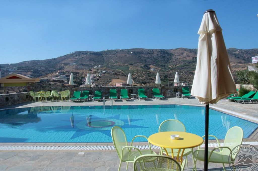 KirjeldusLõbus perehotell hea asukohaga Hersonissose läheduses. Hotelli ümbruses on ka elav tänav poekeste ja kohvikutega. Hotell ise on pisut kulunud ja üldruumid ning toad võivad olla vanema välimusega ning mööbel tubades vana ja lihtne. Tegemist on väga suure hotelliga, territoorium on samuti suur, rohelust ja basseinialasid palju. Korralik liivarand on hotellist üle tee, kus paikneb ka hotelli eraldi enda territoorium. Veepargis saavad lustida pisemad ja suuremad lapsed. |