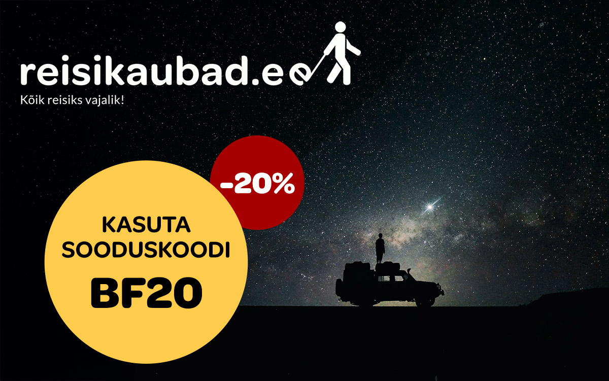 Sisesta ostukorvis sooduskood BF20 ja valmistu järgmiseks reisiks soodsama hinnaga 📉🛒